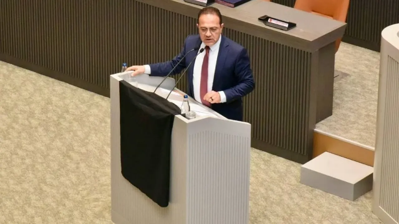 CTP Milletvekili Erkut Şahali, kürsüye siyah bayrak astı; buna bazı vekiller itiraz etti.