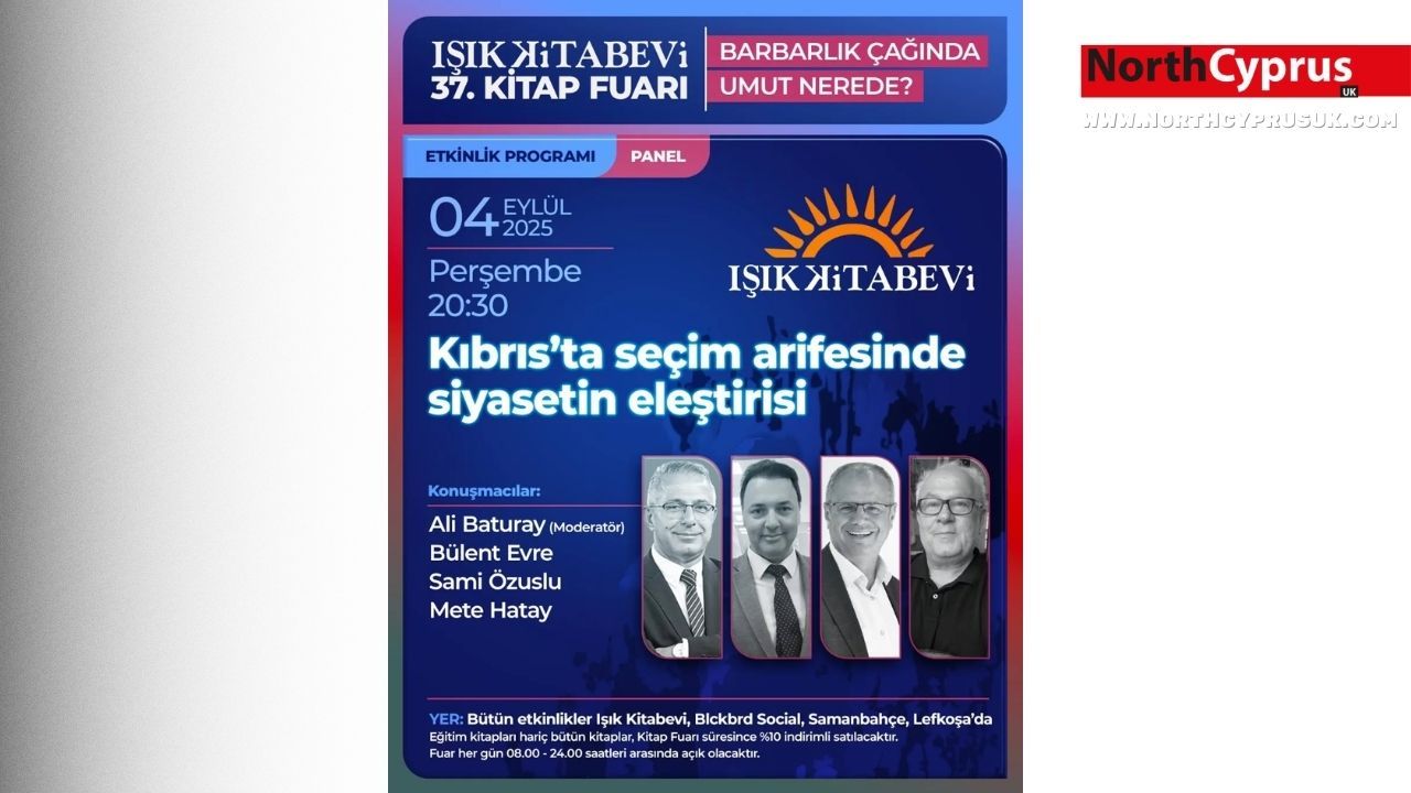Işık Kitabevi’nin bu yıl 37’ncisini düzenlediği Kitap Fuarı kapsamında dikkat çeken bir panel etkinliği gerçekleşecek. “Kıbrıs’ta Seçim Arifesinde Siyasetin Eleştirisi” başlıklı panel, 4 Eylül Perşembe günü saat 20.30’da Blckbrd Social, Samanbahçe/Lefkoşa’da düzenlenecek.
