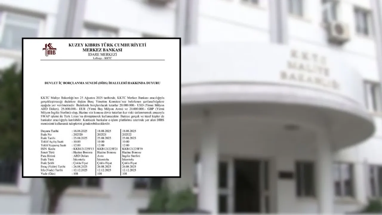 Merkez Bankası, 25 Ağustos'ta Maliye Bakanlığı aracılığıyla gerçekleştirilecek Devlet İç Borçlanma Senedi (DİBS) ihalelerine ilişkin duyuru yayımladı.