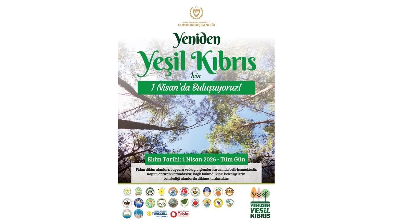 KKTC Cumhurbaşkanı Tufan Erhürman’ın eşi Nilden Bektaş Erhürman, kişisel sosyal medya hesabından yaptığı paylaşımla tüm halkı yarın sabah gerçekleştirilecek dev ağaçlandırma seferberliğine davet etti. "Yeniden Yeşil Kıbrıs" hedefiyle yola çıkan projede, 7300 başvuruyla rekor bir katılıma ulaşıldı.