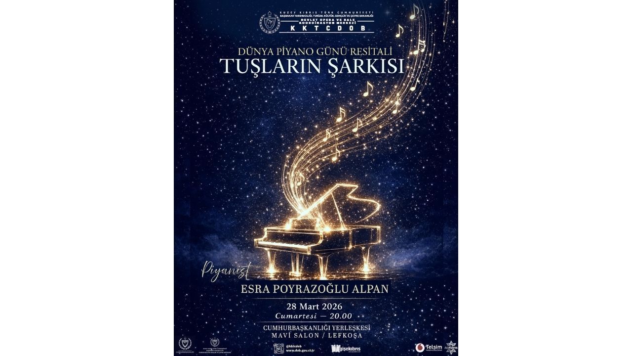 Kuzey Kıbrıs Türk Cumhuriyeti Devlet Opera ve Bale Koordinasyon Merkezi (KKTCDOB), Dünya Piyano Günü kapsamında düzenlediği özel bir etkinlikle sanatseverleri piyano müziğinin büyüleyici dünyasıyla buluşturuyor. “Tuşların Şarkısı” başlıklı piyano resitali, 28 Mart 2026 Cumartesi akşamı saat 20.00’de Lefkoşa’da bulunan KKTC Cumhurbaşkanlığı Yerleşkesi Mavi Salon’da gerçekleştirilecek.